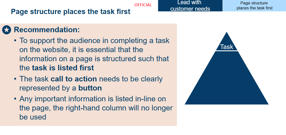 - Avoid linking to pages and documents by hyperlinking text – use buttons, icon cards and document lists instead.