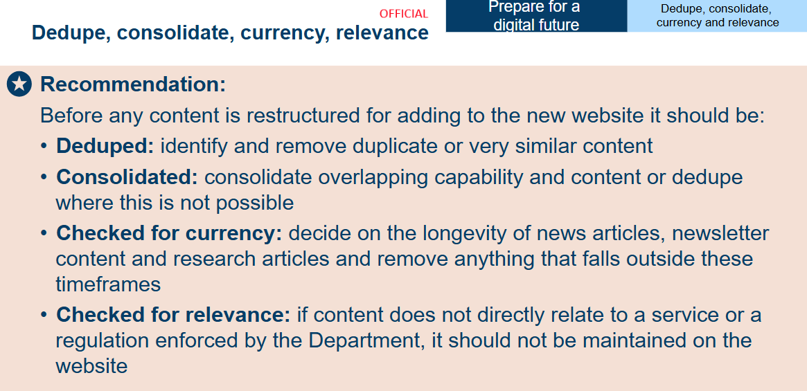 - Write in line with national standards: according to the Australian Government Style Manual, content must be written and aimed at an audience of a Year 7 (between 12-14 years of age) reading and comprehension level.