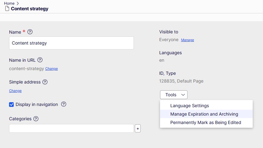 You can also schedule the expiry of a page to happen on a specific date and time (see "Expire date" above).