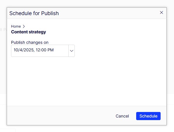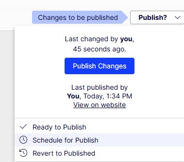 Click the down arrow next to the Publish button and then select "Schedule for publish":